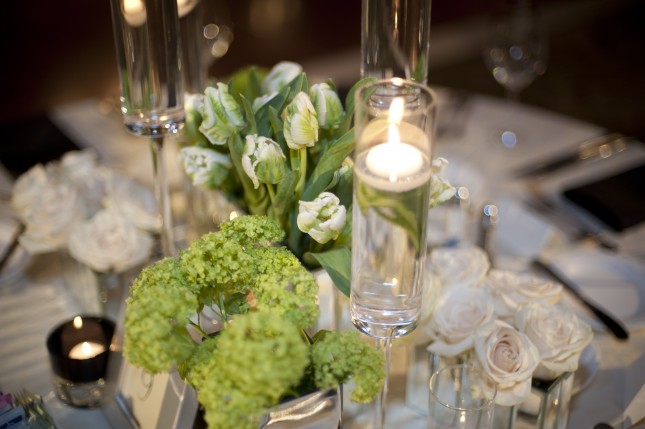 THE COLORS: white, ivory, pops of green, sleek black accents